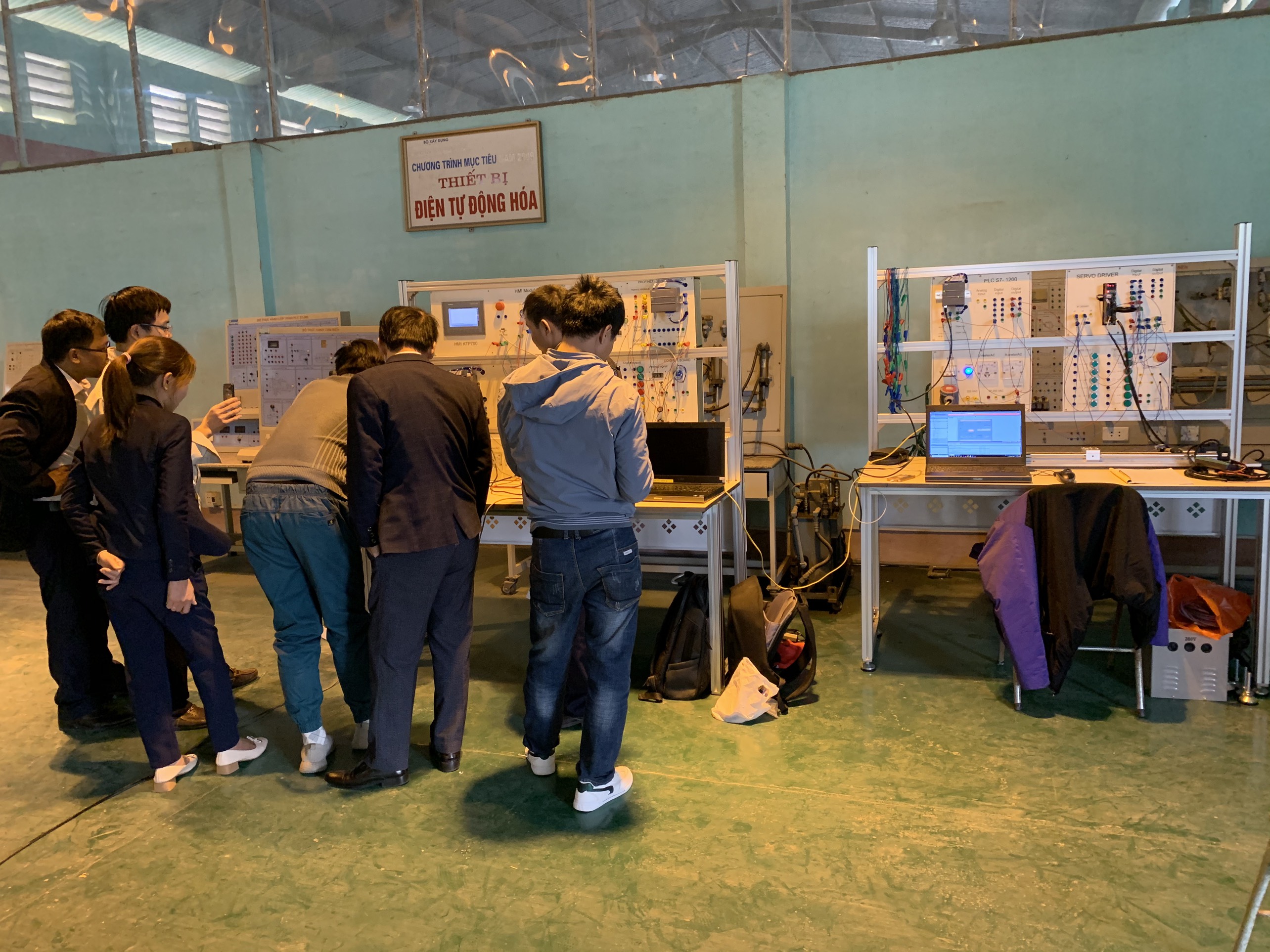 Hình ảnh: Hướng dẫn đào tạo vận hành Bàn thực hành PLC S7-1200 điều khển động cơ Servo điều tại nhà trường